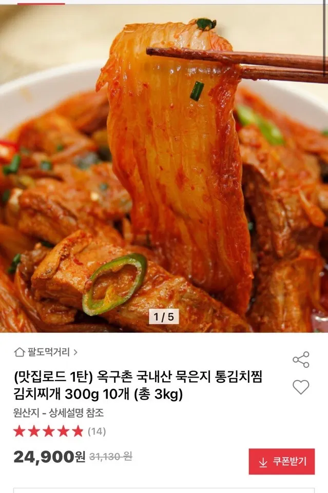 옥구촌 국내산 묵은지 통김치찜 300g 10개 총3kg