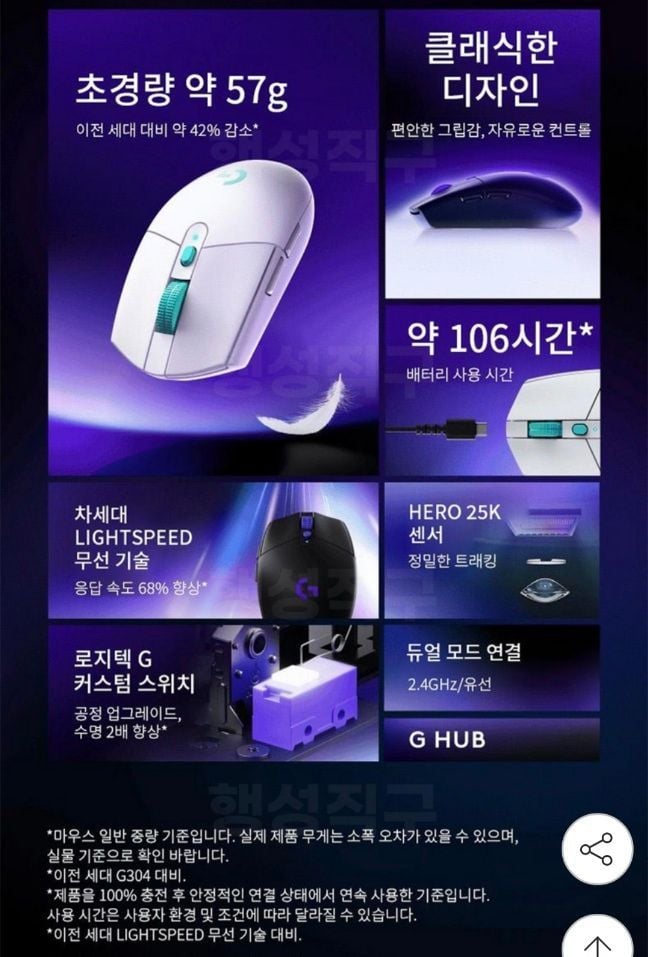 G304 에그쉘 기반에서 무게감소+내장배터리+히어로센서 25K(지슈라1에 쓰이던 센서임) 탑재