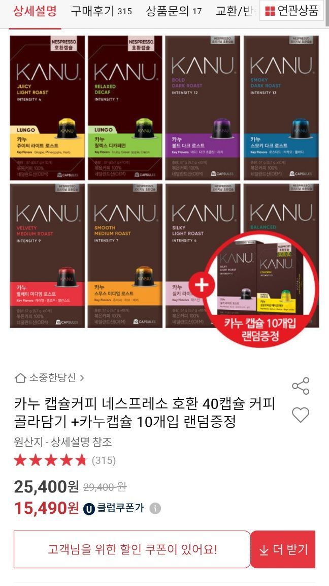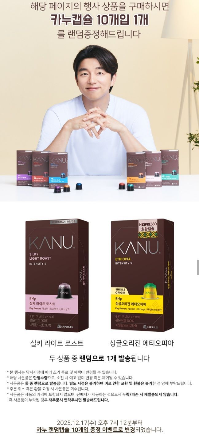 | 카카오 선물하기 | 카누 네스프레소 호환 캡슐커피 50캡슐+10캡슐 총60캡슐 | 32,900원 | 최대혜택가, 60캡슐 |