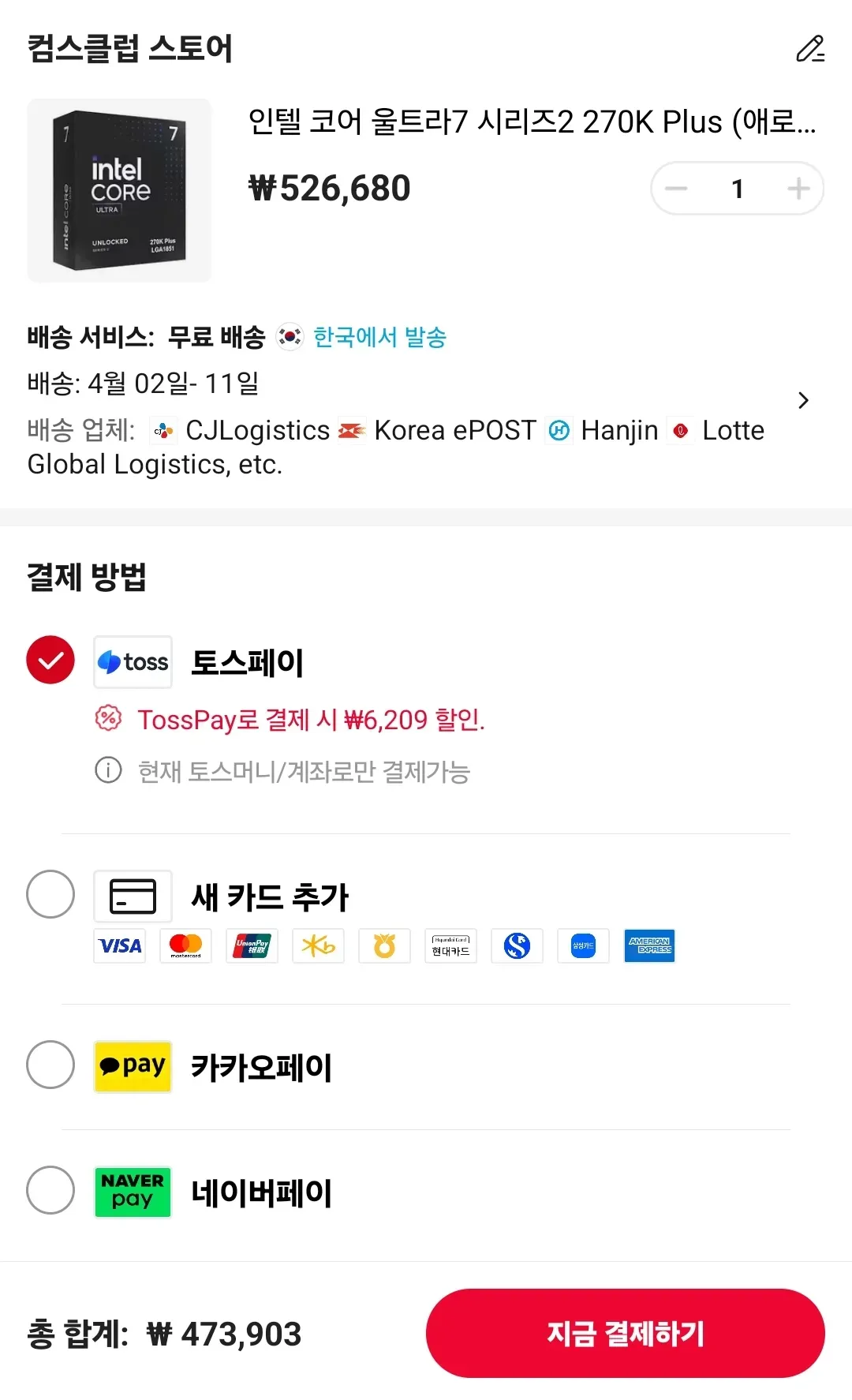 컴퓨존인텔 코어 Ultra 7 270K Plus495,000원정품