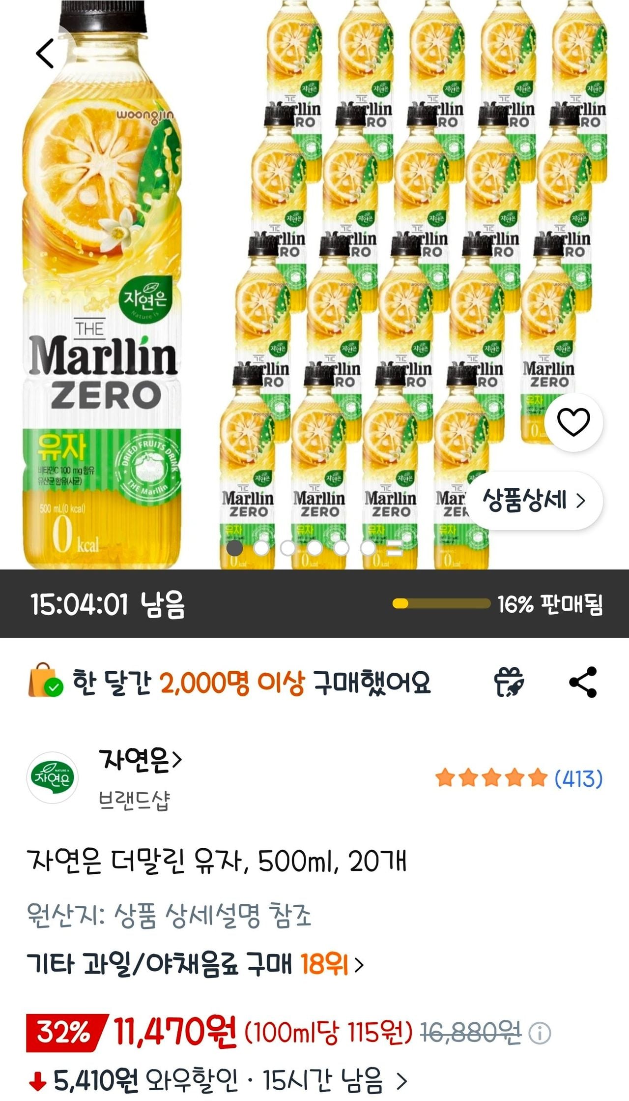 자연은 더말린 제로 유자 500mL 20개