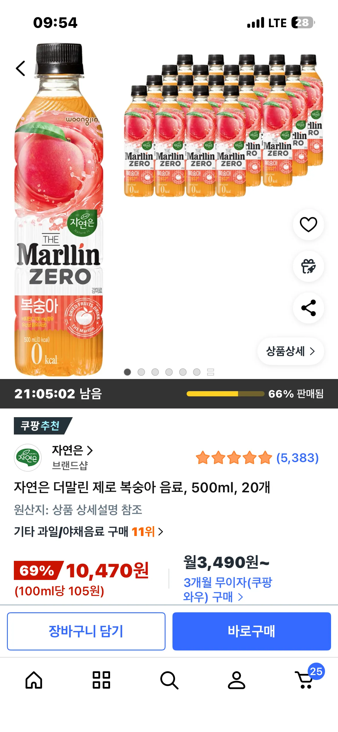📦 자연은 더말린 제로 복숭아 음료 500ml, 20개