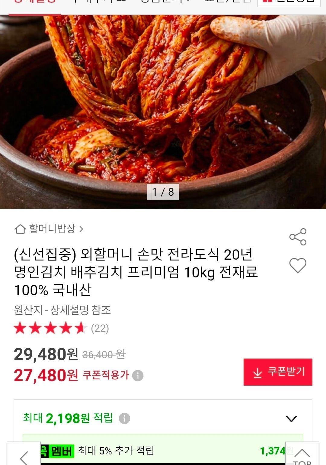 | 지마켓 | 전라도식 배추김치 10kg (올 국산) | 27,480원 | 핫딜모음에서 제공한 가격 |
