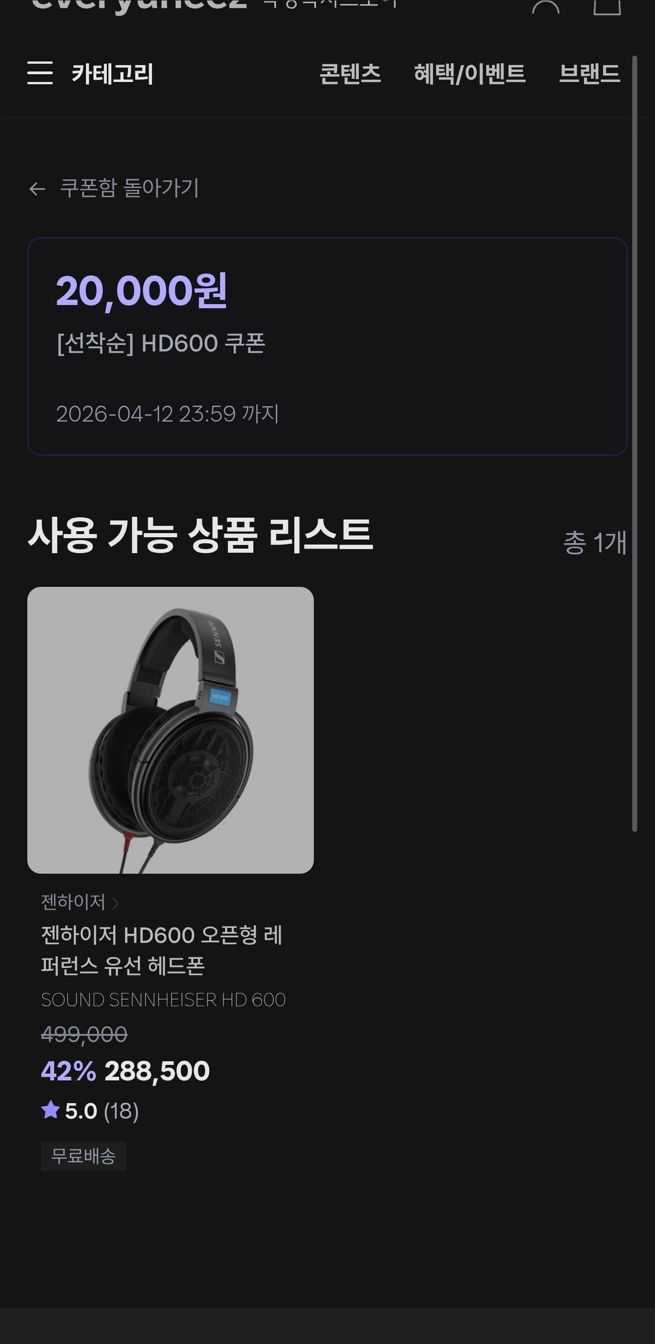 Hd550이 저역은 더 잘 나온다는 평가가 있으나 나는 서브기 느낌으로 hd600산거고 이번 학복스가 hd600만으로 쿠폰 주더라