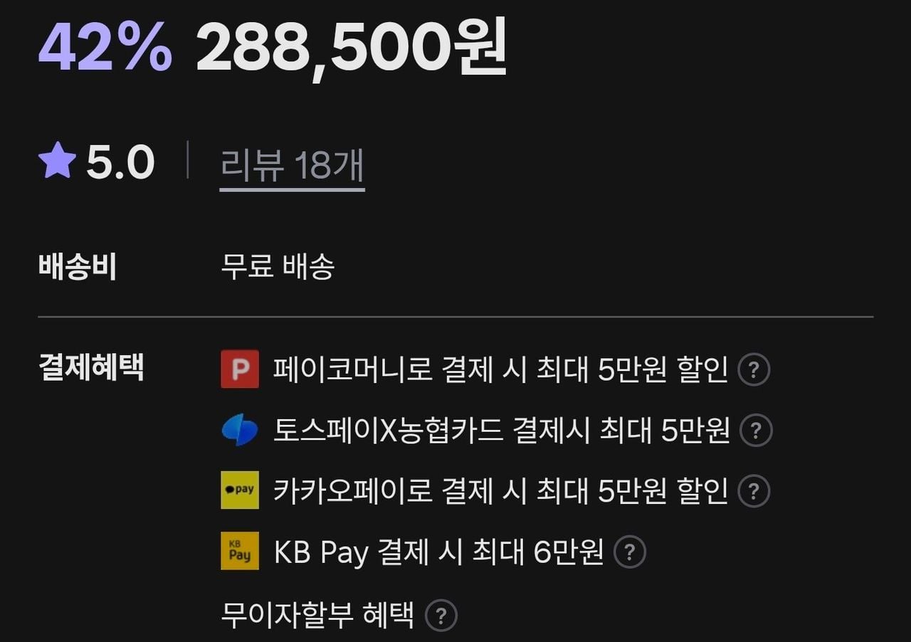 26.8만원에서 토스 농협카드는 5프로 카카오페이는 4프로 kb 페이는 1만원 할인가능함