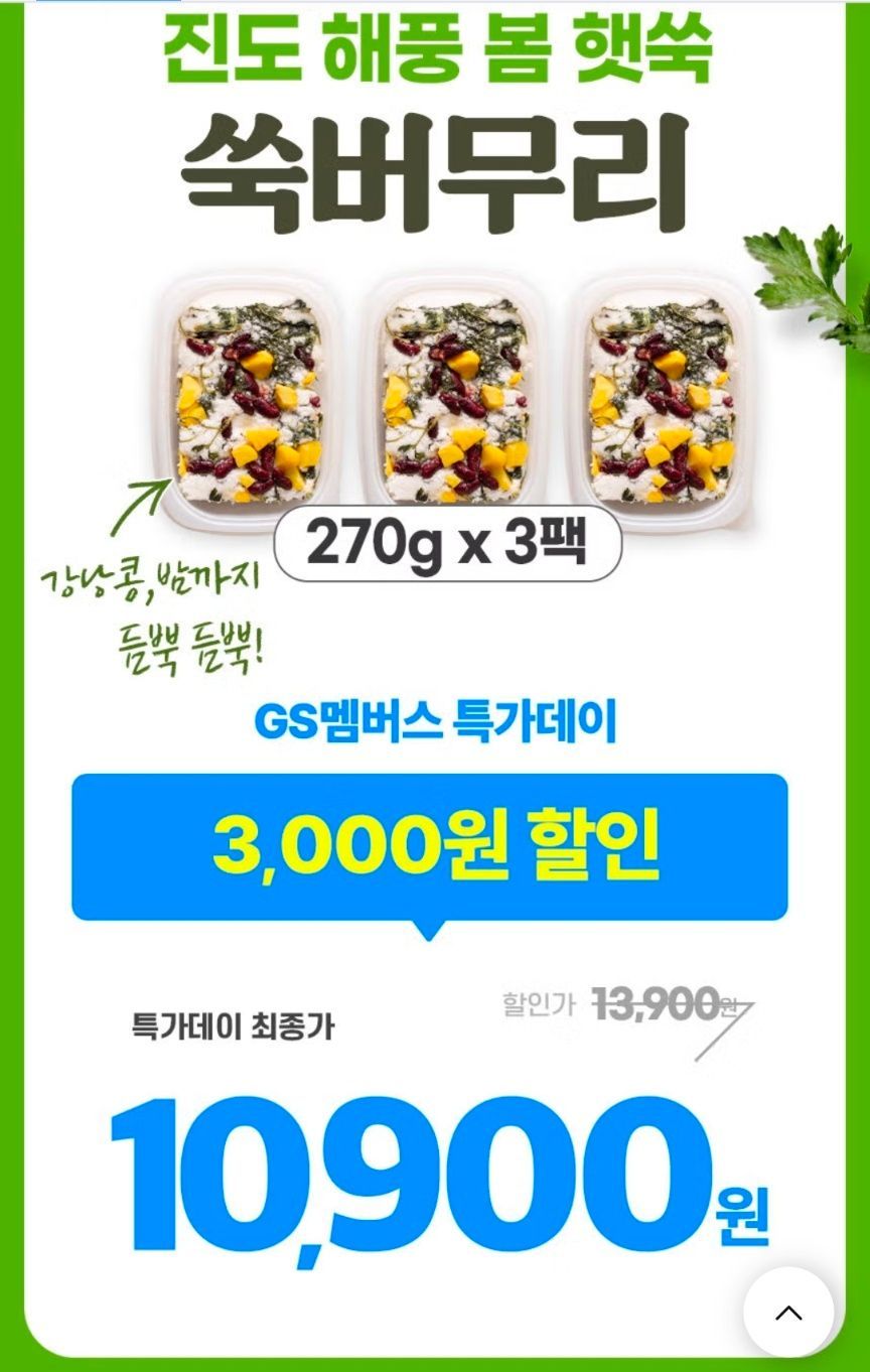 GS샵진도해풍 햇 봄쑥 쑥버무리 270g 3팩10,900원핫딜모음핫딜모음에서 제공한 가격