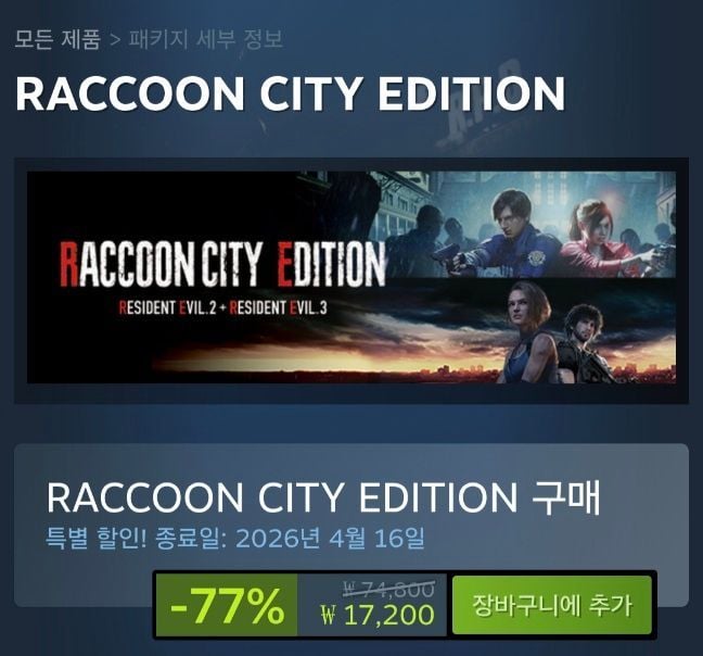 다른 쇼핑몰에서 정확히 일치하는 라쿤시티 에디션 가격 정보 없음. 스팀 핫딜 가격이 최저로 보이며 추천.