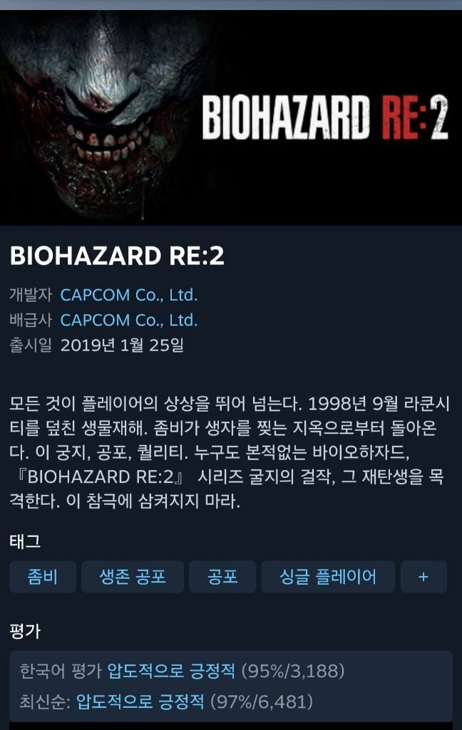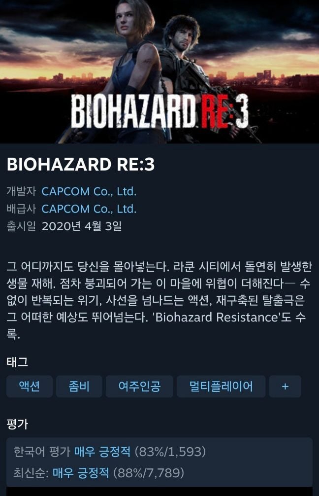 스팀캡콤세일)바이오하자드 RE:2, RE:3 등 라쿤시티 에디션12,450원핫딜모음핫딜모음에서 제공한 가격