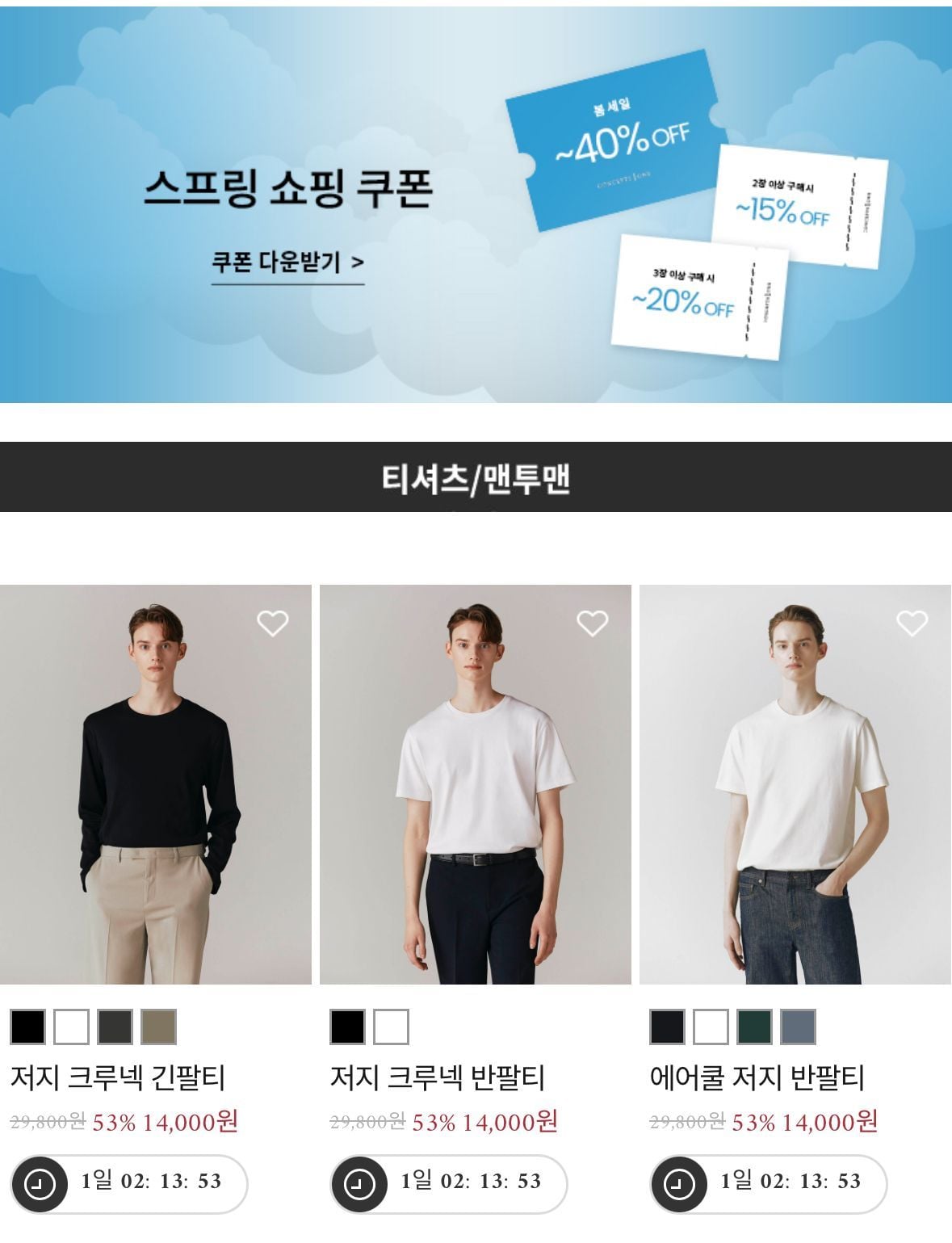 컨셉원 기본 반팔/긴팔티/에어쿨 반팔티 균일가