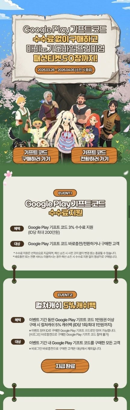 컬쳐랜드 -> 마비노기모바일1주년 -> 하단의 [마비노기모바일 1주년 기념] 구글 기프트 코드 이벤트 바로가기