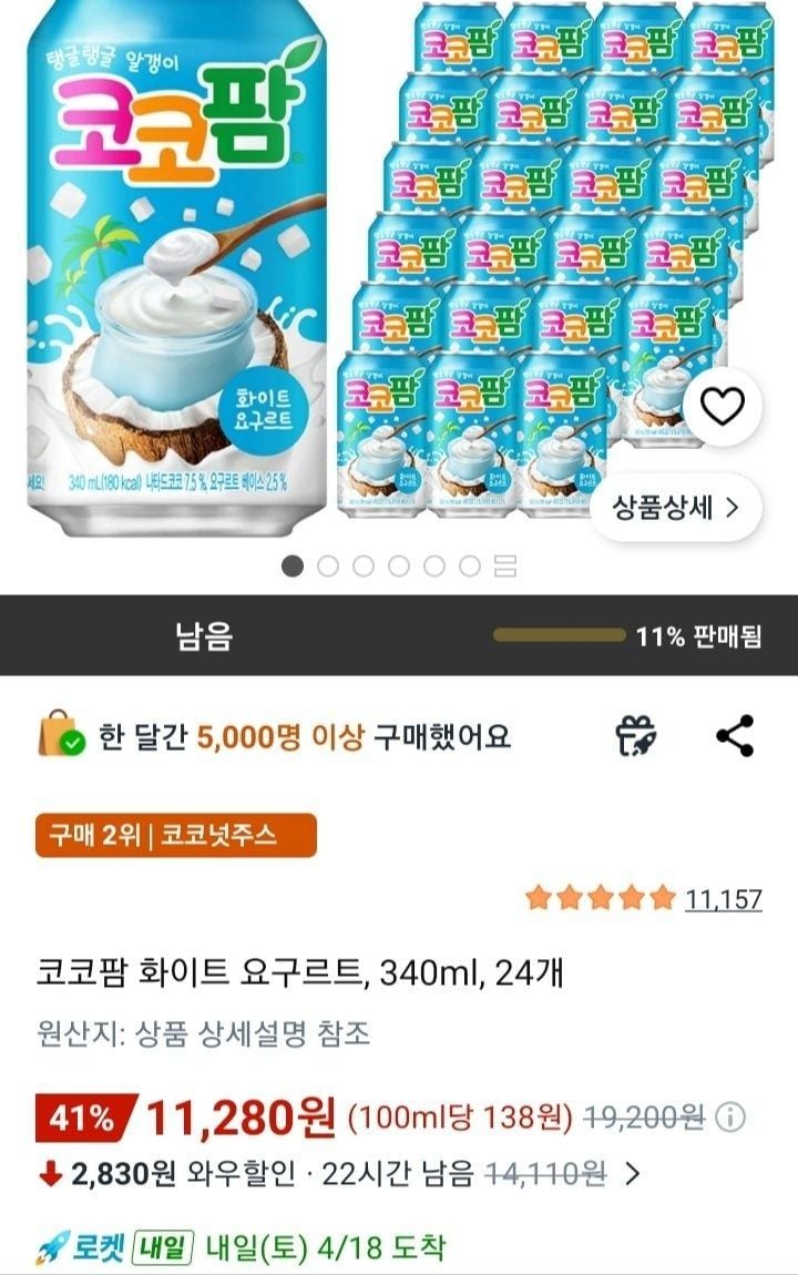 전진몰해태음료 코코팜 화이트 요구르트 340ml x24캔16,500원배송비 3,000원 별도