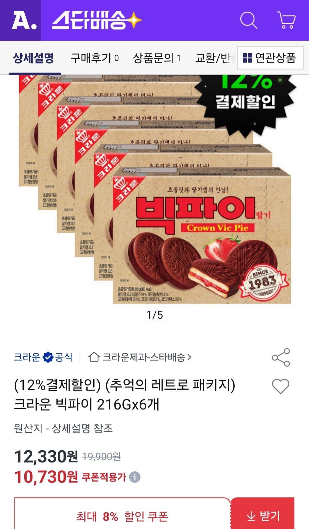 📦 크라운 빅파이 216Gx6개
