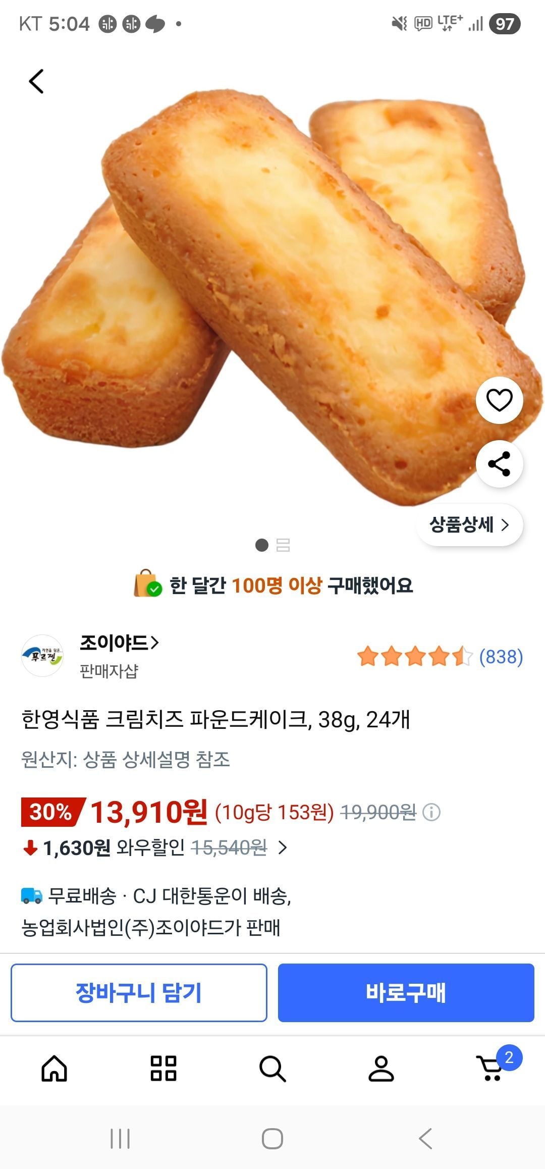 쿠팡크림치즈파운드케이크 24개13,910원핫딜모음핫딜모음에서 제공한 가격