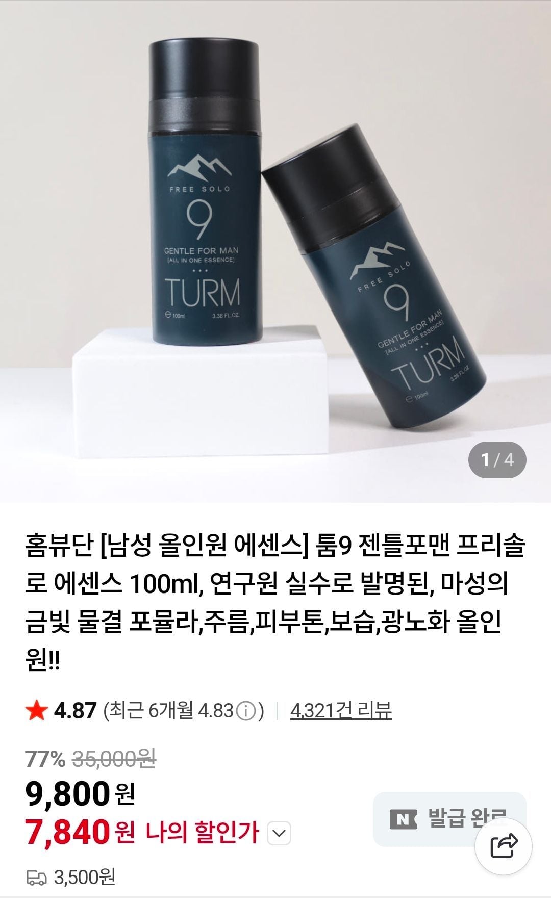 | jirum-alarm | 툼9 젠틀포맨 프리솔로 올인원 에센스 100ml | 4,000원 | 쿠폰 1,000원 적용 가능, 배송비 무료 |