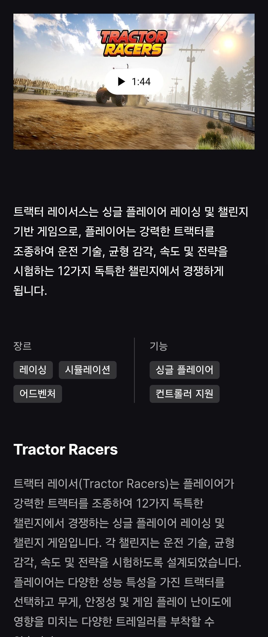 트랙터레이서 재밌어보이는데 무료로나옴