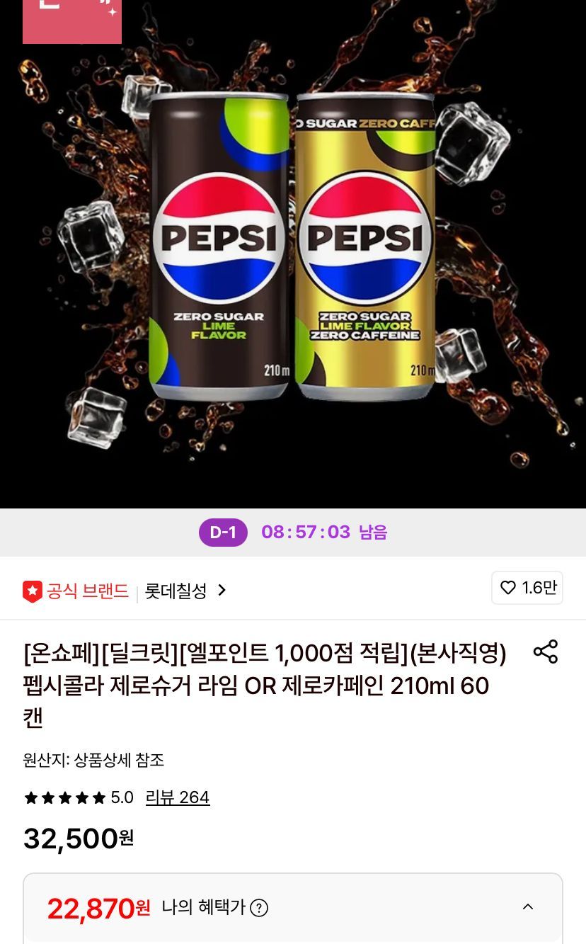 | 롯데온 | 펩시콜라 제로슈거 라임 or 제로카페인 210ml 60캔 | 22,870원 | 핫딜모음에서 제공한 가격 |