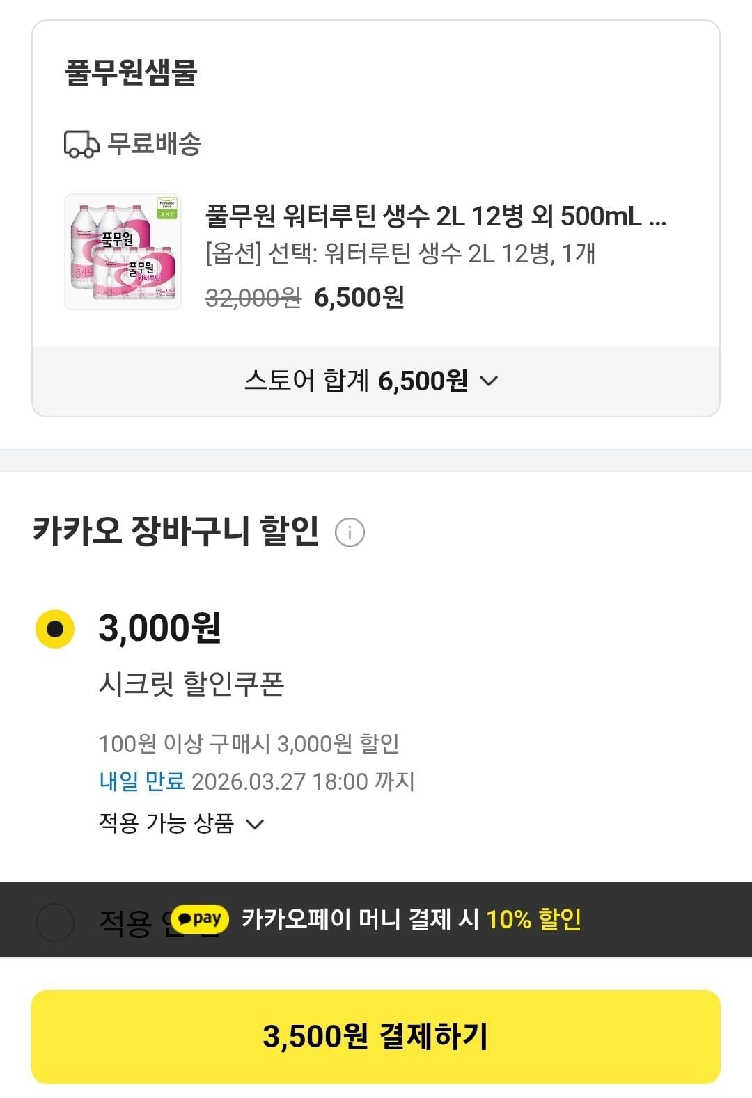 카카오톡풀무원 워터루틴 생수 2L 12병3,500원핫딜모음핫딜모음에서 제공한 가격