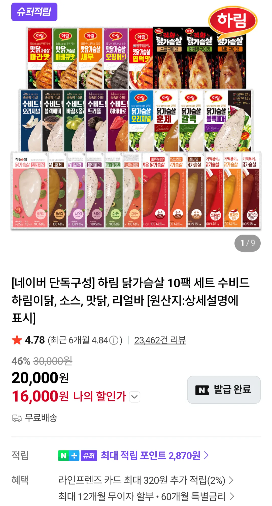 | 네이버 | 하림 닭가슴살 10팩 세트 수비드 하림이닭, 소스, 맛닭, 리얼바 | 16,000원 | 핫딜모음에서 제공한 가격 |