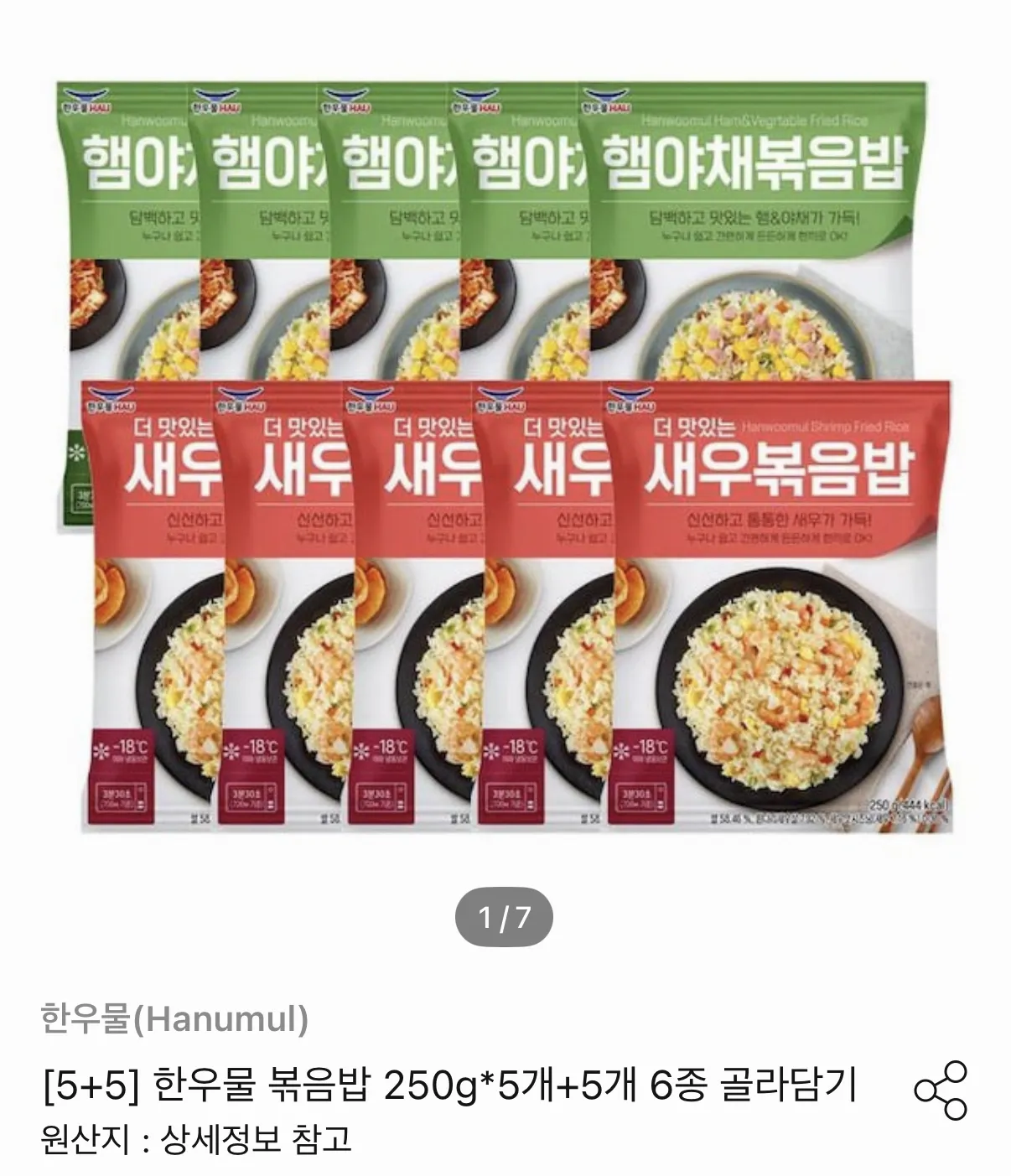 📦 한우물 볶음밥 250g×5개+5개 6종 골라담기