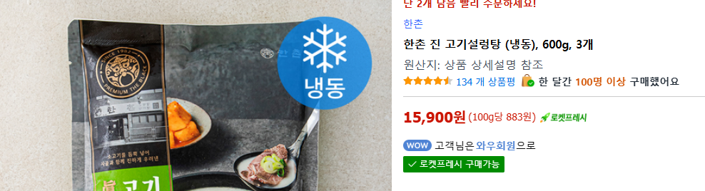 📦 한촌 진 고기설렁탕 (냉동), 600g, 3개