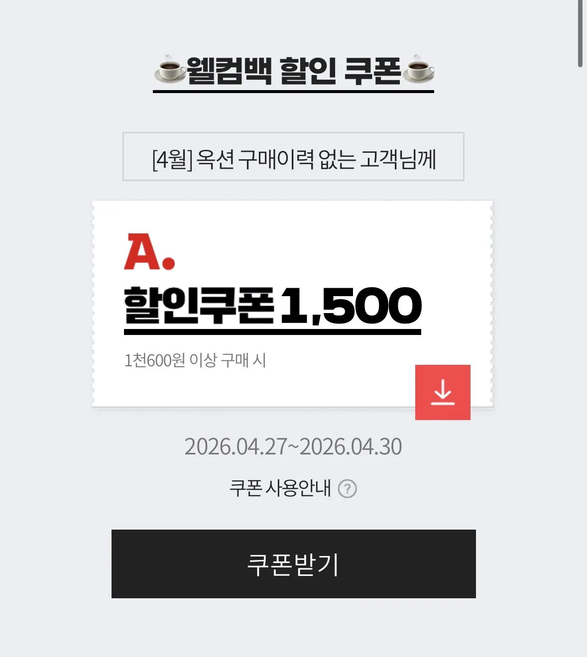 📦 4월미구매자 메가 아메리카노