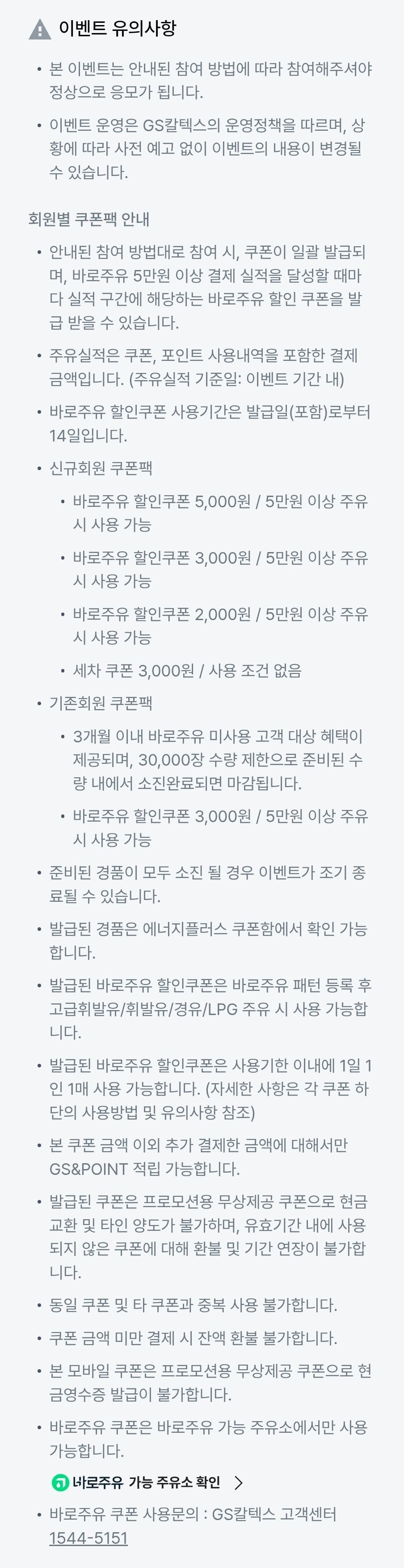 5만원 이상 바로주유시 3천원 할인