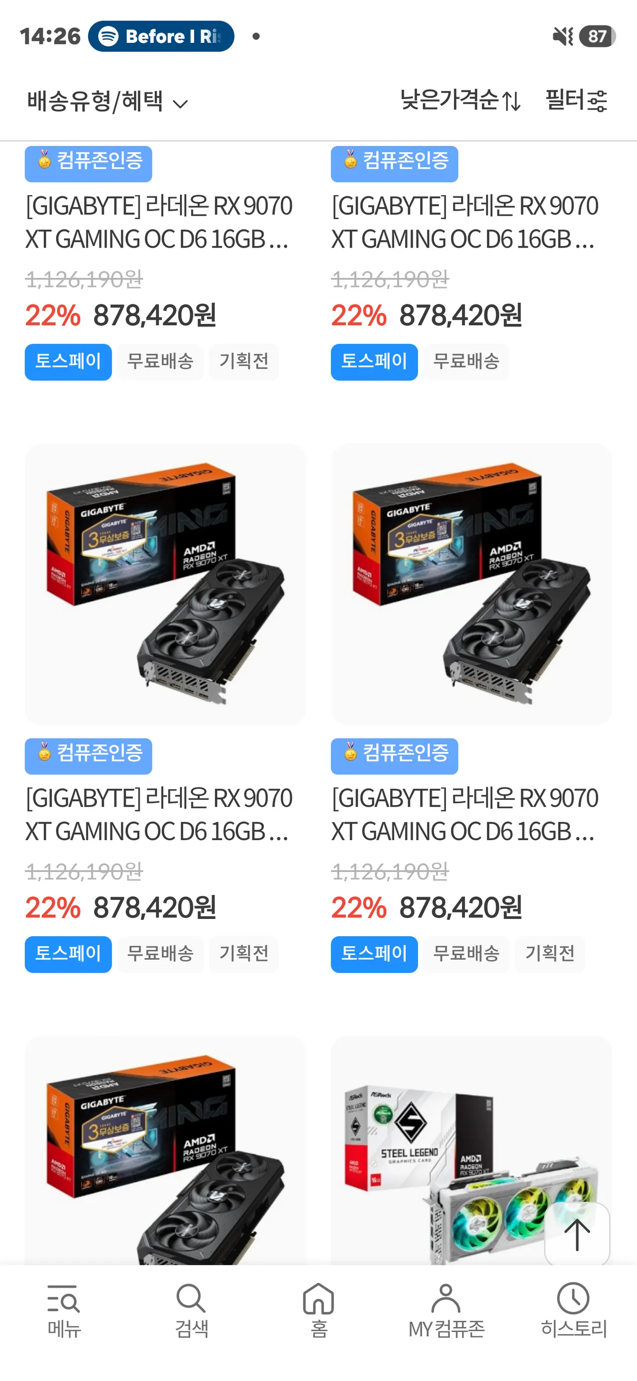 컴퓨존에서 9070XT 검색하고 낮은 가격순으로 보면됨