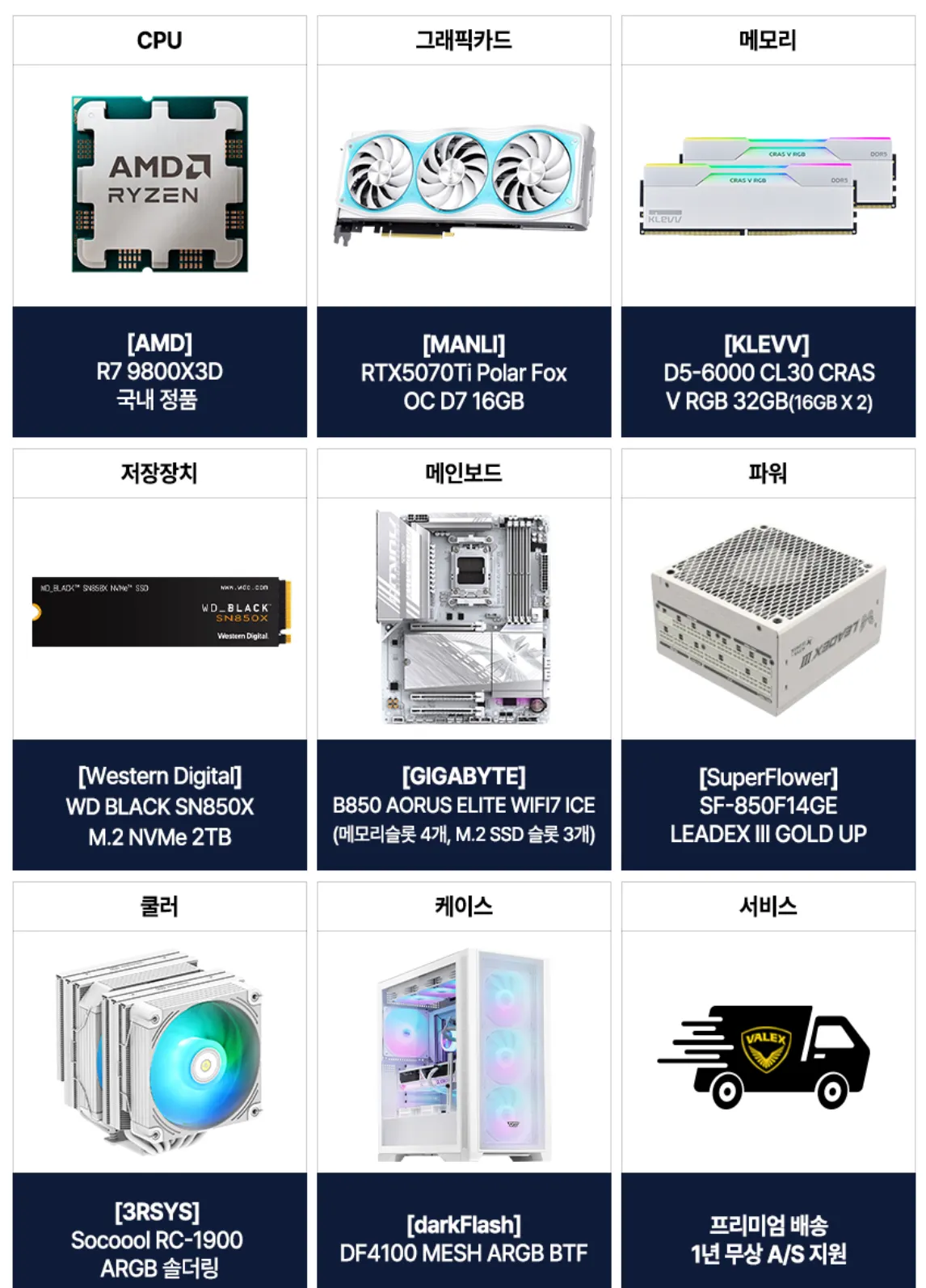 | kjwwang | 라이젠 9800X3D + RTX 5070 Ti 화이트 게이밍 PC | 570만원 중반 | 비슷한 스펙 추천 견적 |