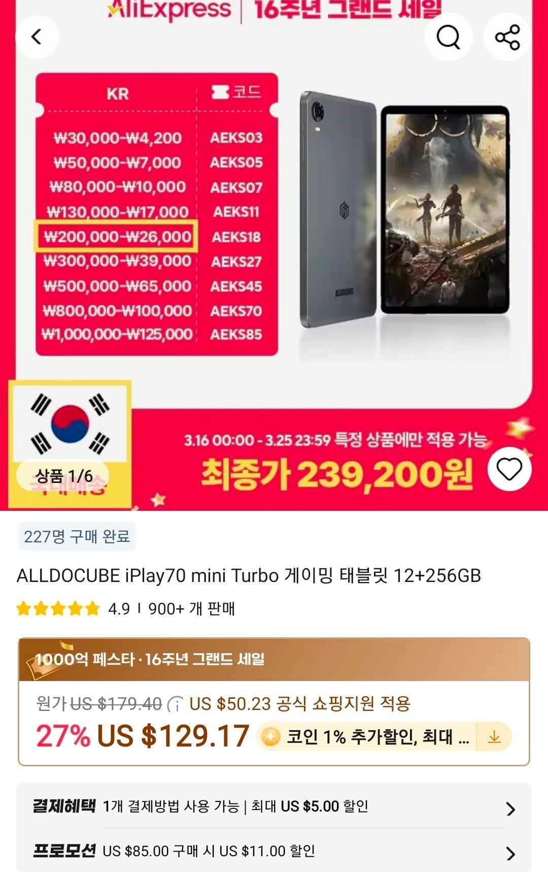 | 다나와 | ALLDOCUBE iPlay70 미니 터보 (256GB) | 278,070원 | 하나카드 결제 시 혜택가, 무료배송 |