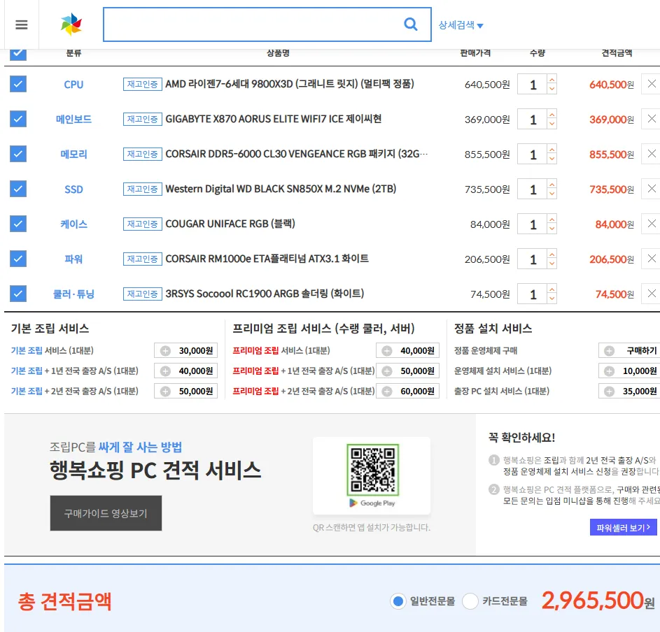본체를 아예 새로 맞춰야하는 사람이라면 충분히 좋다고 생각되는 가격임
