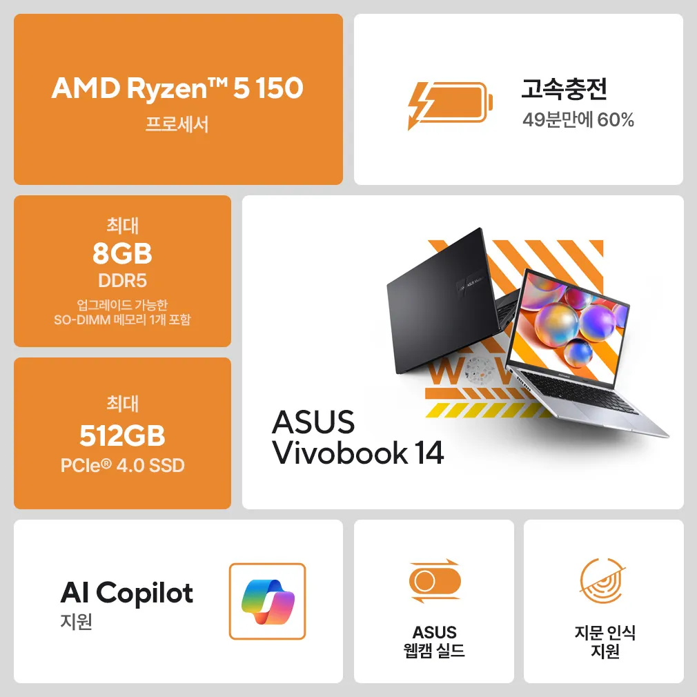 ASUS 비보북 14 M1405NAQ-LY087W 15.6인치 노트북 AMD 라이젠 5 8GB 512GB