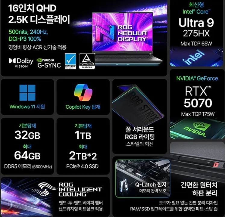 ASUS ROG 16인치 게이밍 노트북 U9 275HX RTX5060 32GB 1TB Win11