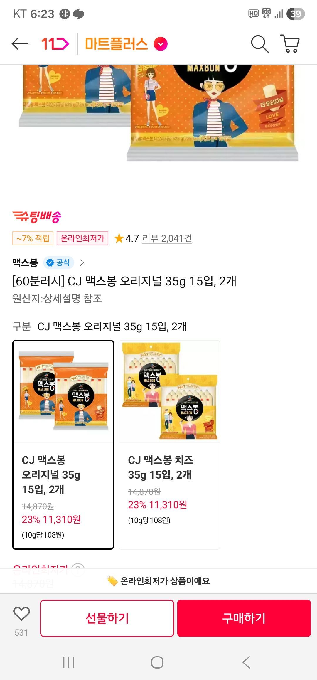 11번가 11,310원이 쿠팡(14,500원), 쿠차(14,600원)보다 저렴해 가장 추천