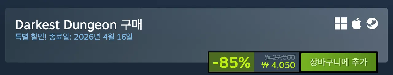 | 스팀 | Darkest Dungeon 다케스트 던전 | 4,050원 | 핫딜모음에서 제공한 가격 |