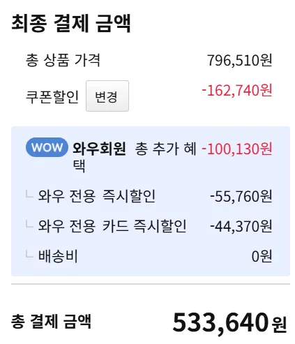 쿠팡 533,640원 구매하기
