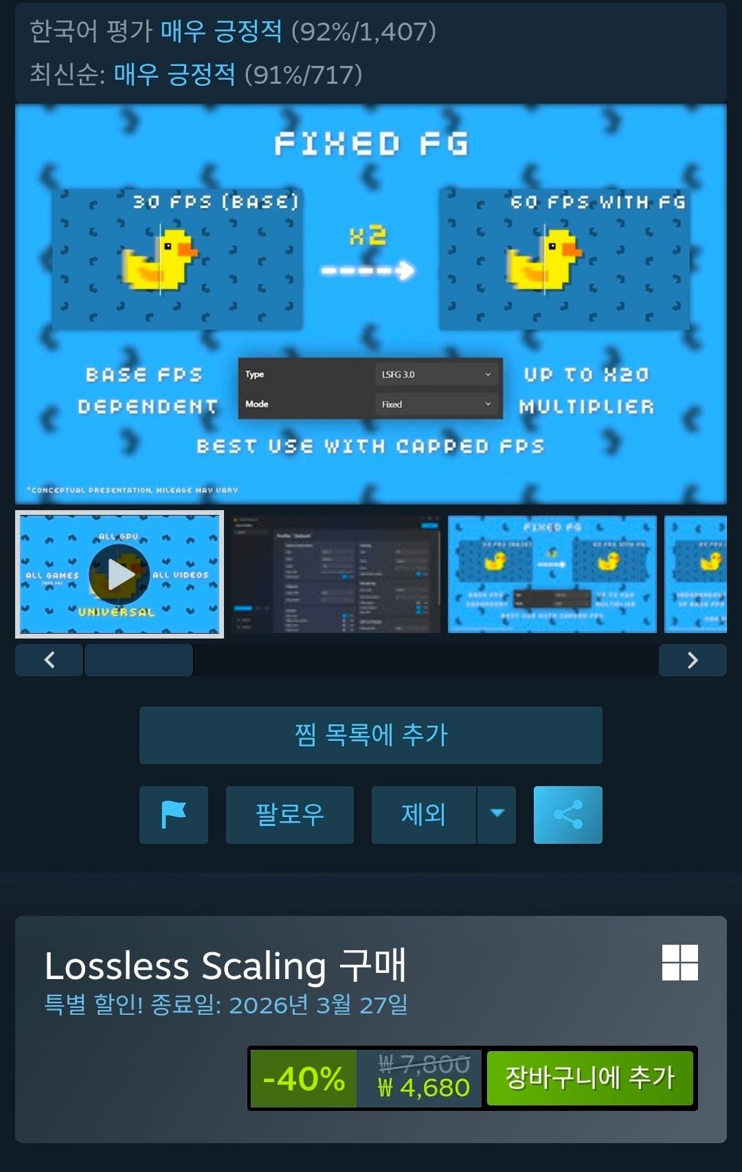 | 스팀 | Lossless Scaling | 4,680원 | 핫딜모음에서 제공한 가격 |