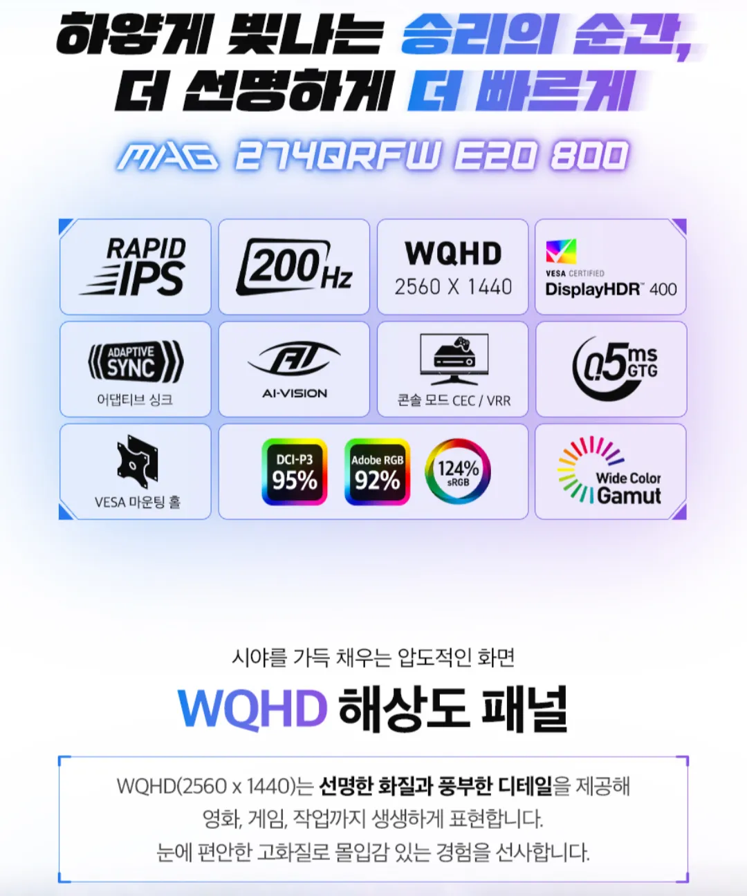 MSI MAG 274QRFW E20 800 IPS 게이밍 WQHD 200 AI Vision 피벗 화이트