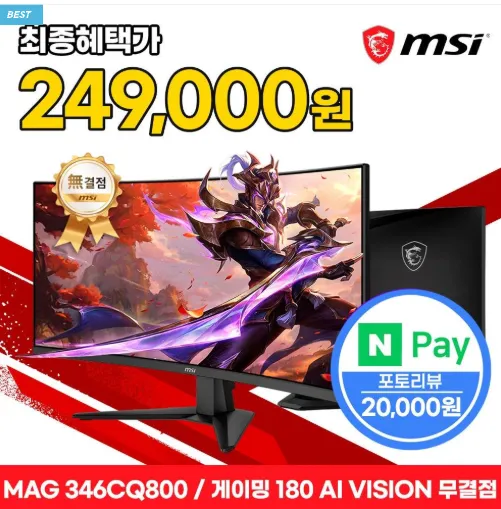 | maizes.com.co | MAG 346CQ800 게이밍 UWQHD 180 Ai Vision 무결점 커브드 모니터 | 306,270원 | 신규 가격 (세금 포함) |