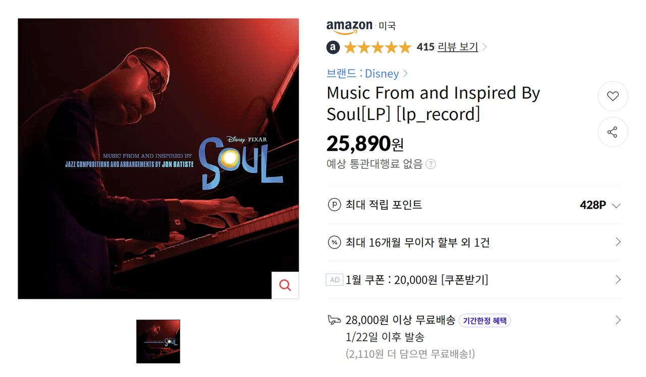 | converta.app | Music From and Inspired By Soul LP 엘피판 (미국 발송) | 42,600원 | 신규 (세금 포함) |