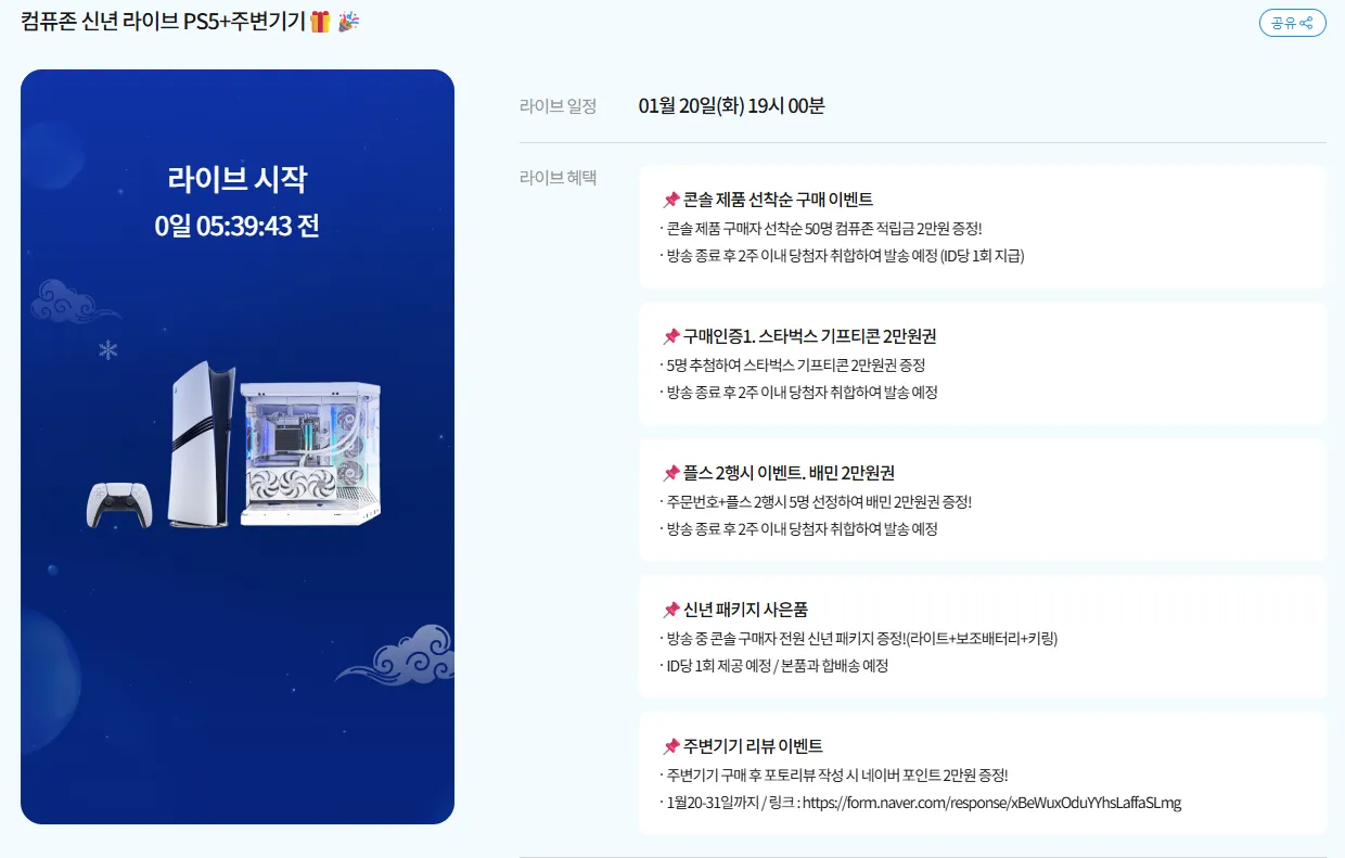 라이브 오늘 19시인데 선착순 컴퓨존 적립 2만