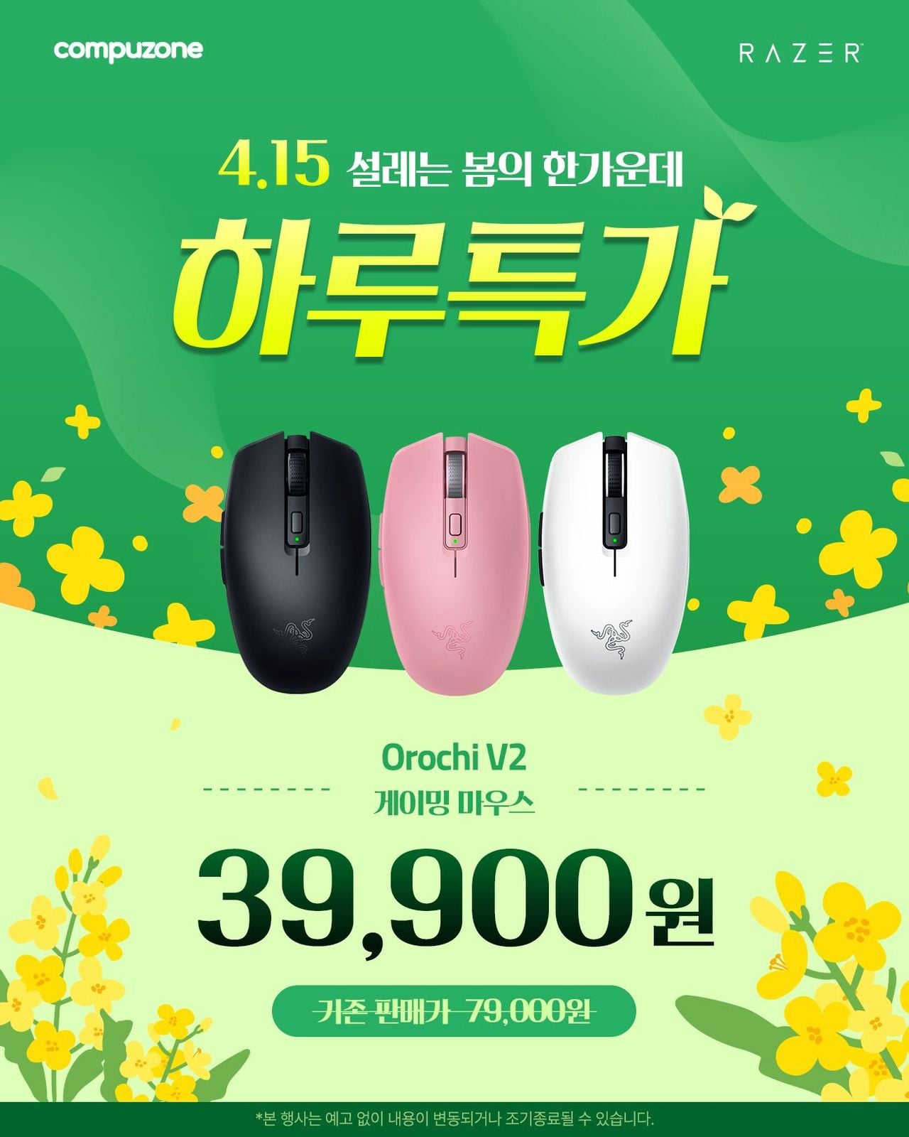 | 컴퓨존 | RAZER 오로치(Orochi) V2 게이밍 마우스 하루 특가(4.15) | 39,900원 | 핫딜모음에서 제공한 가격 |