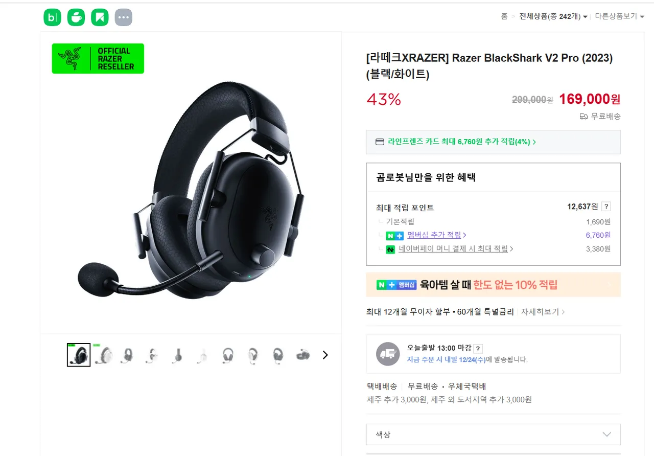| 쿠팡 | Razer BlackShark V2 Pro 2023 (블랙, 정품) | 283,200원 | 로켓배송 |