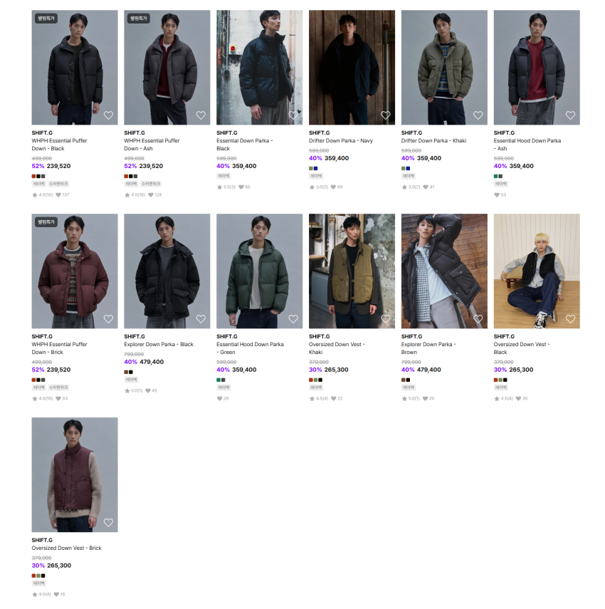 시프트지라고 삼성물산에서 전개하는 브랜드인데 워크웨어+현대적인 트렌드 느낌의 디자인으로 전개하는 브랜드입니다. 런칭한지 얼마 안된 브랜드라 인지도가 높지는 않은데 디자인은 괜찮아 보여서 올려봅니다. 가격이 엄청 착한건 아니지만 애초에 정가가 높아가지고....... 어쨌든 이런 디자인 취향이시면 한번 봐보세요.
