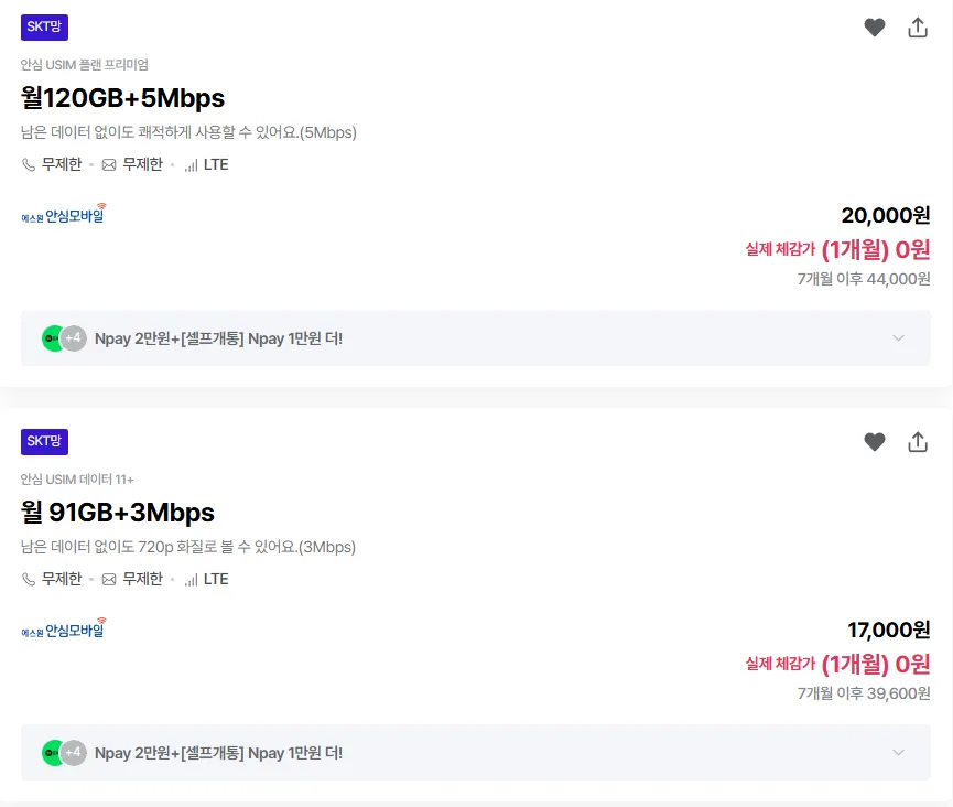 | 다사자 (커뮤니티 정보) | SKT 에스원 120GB+5명박+통문무 | 17,000원 | 커뮤니티/딜 게시글 기준 가격(판매처 링크·캡션 기반) [검색 기록에서 유사 정보 확인됨] |