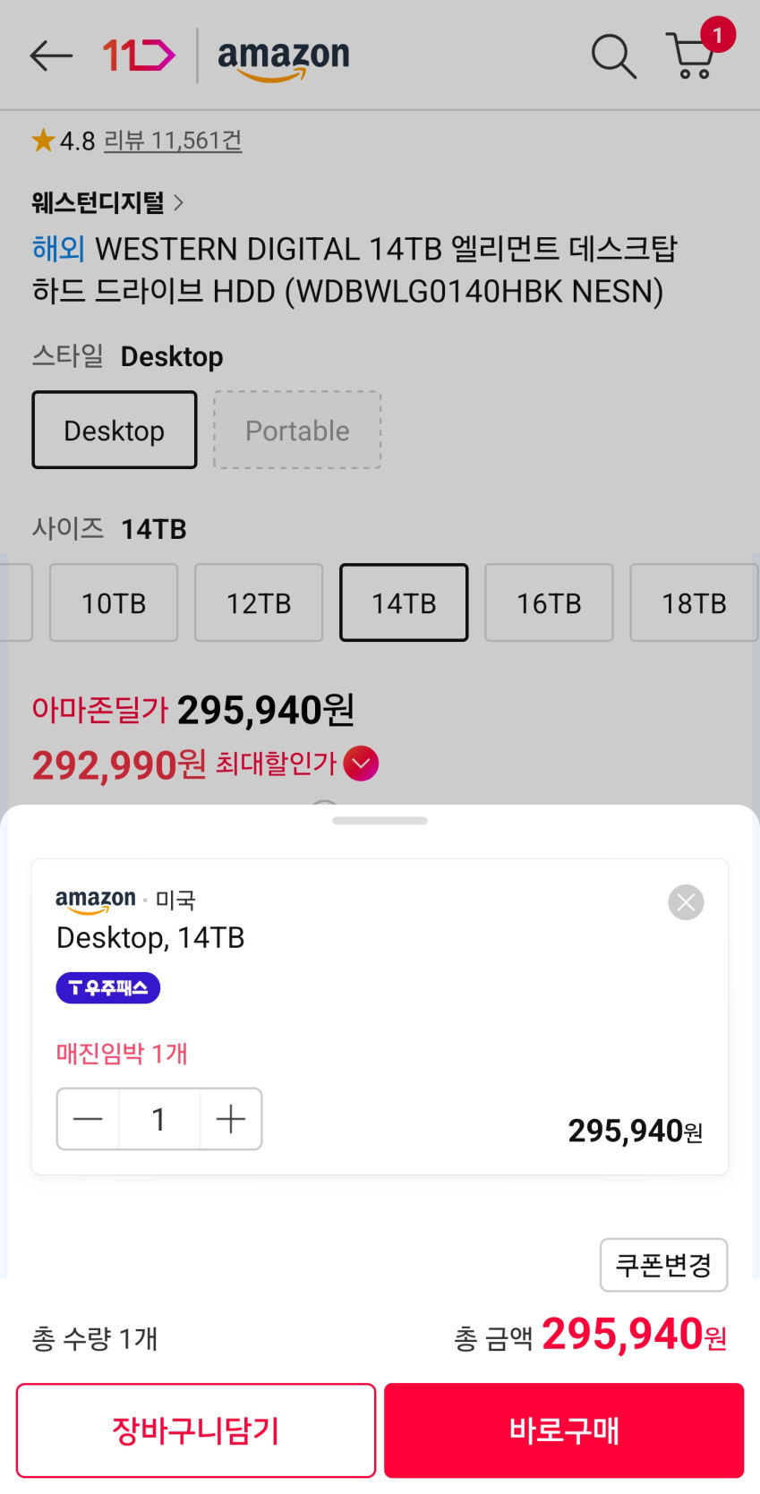14테라에 이 가격이면 옛날보다 많이 비싸지긴 했지만 요즘 같은 시기에 충분히 달릴만한 가격이라 봅니다. (몇 년 전엔 18~20사이 였었거늘..ㅠ)