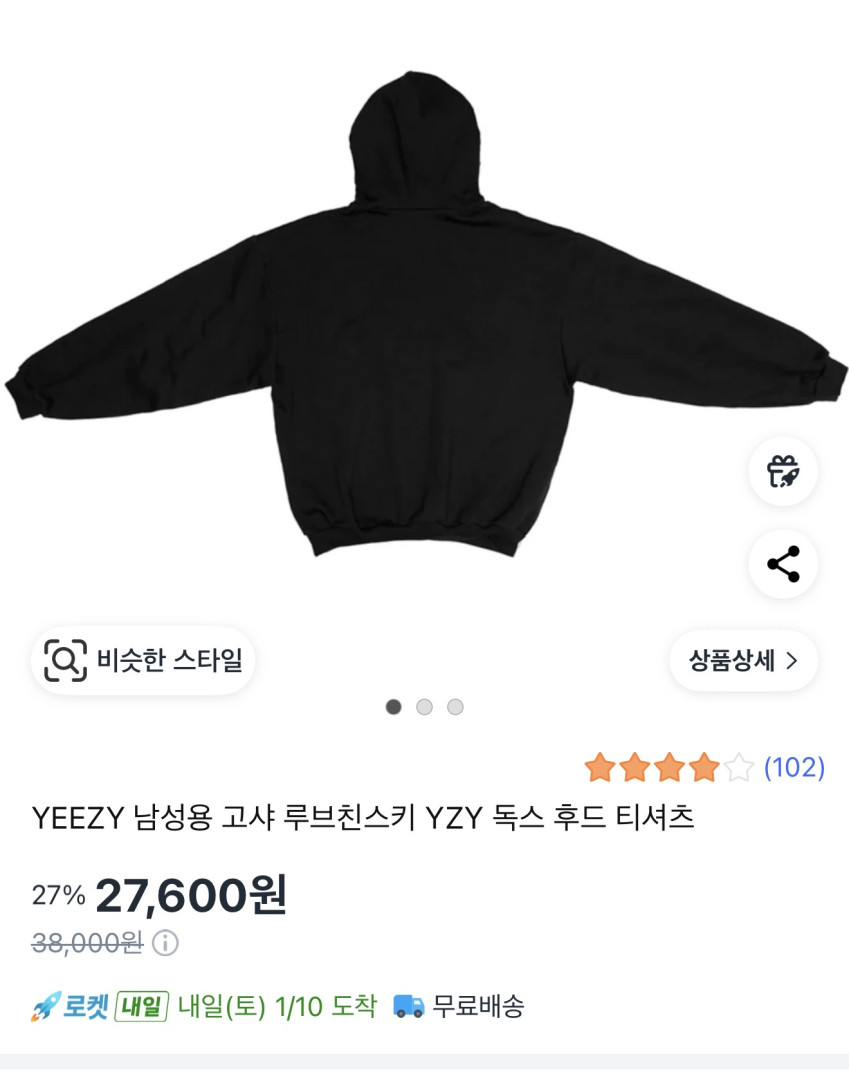 | 쿠팡 | YEEZY 남성용 고샤 루브친스키 YZY 독스 후드 티셔츠 | 27,600원 | 핫딜모음에서 제공한 가격 |