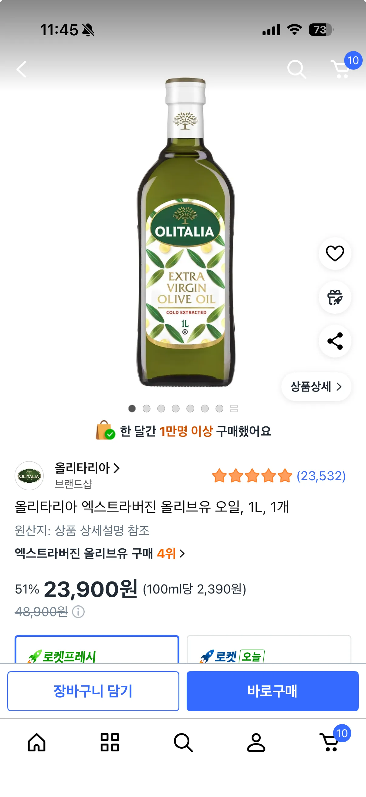 | 네이버쇼핑 | [네맴] 올리타리아 유기농 엑스트라버진 올리브유 1L | 14,620원 | 핫딜모음에서 제공한 가격 |