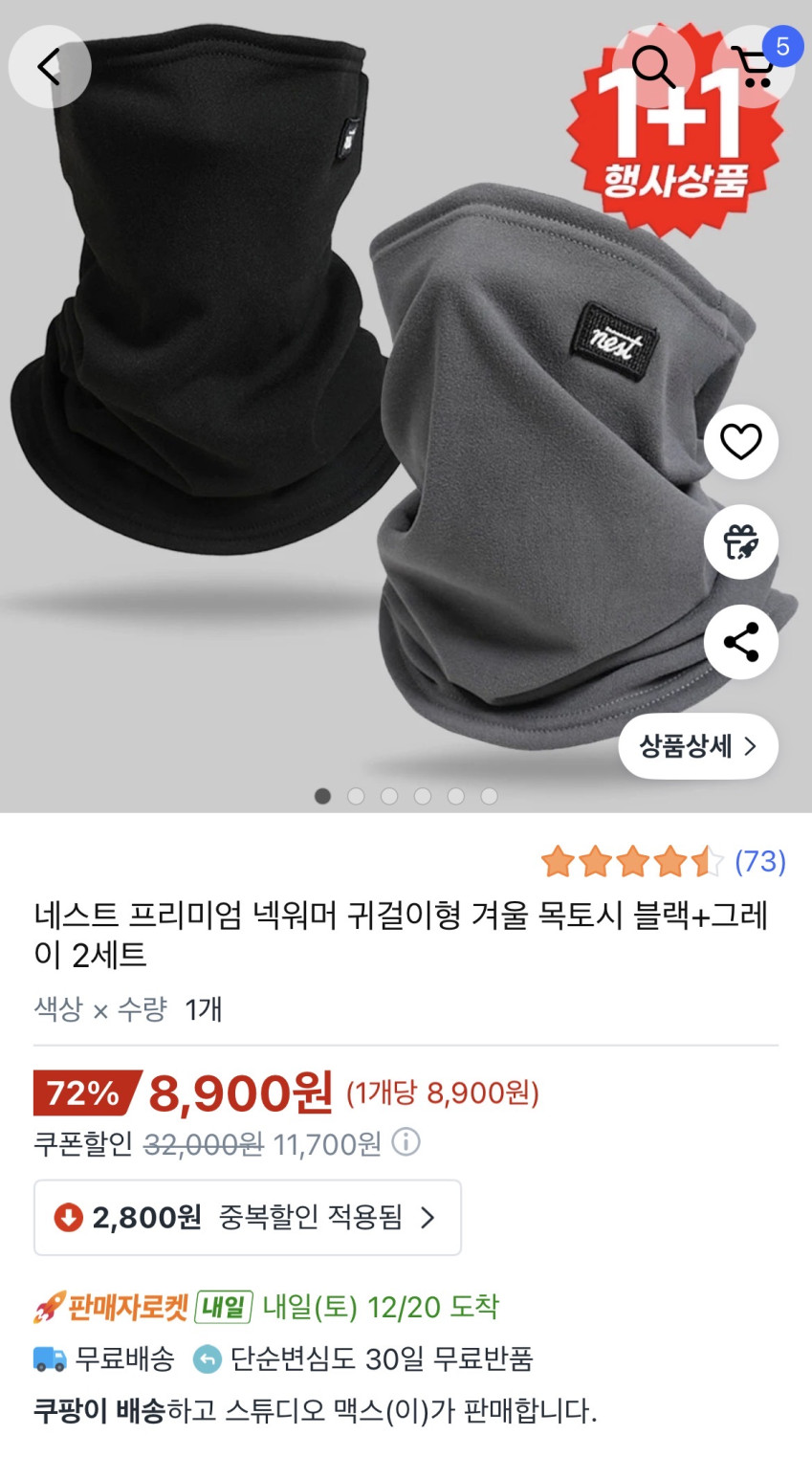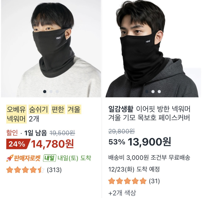 | 쿠팡 | 넥워머 블랙+그레이 2개 | 8,900원 | 핫딜모음에서 제공한 가격 |