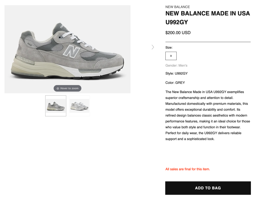 | 쇼핑하우 | 뉴발란스 992 Made in USA 코어 그레이 U992GY | 409,920원 | 무료배송 |