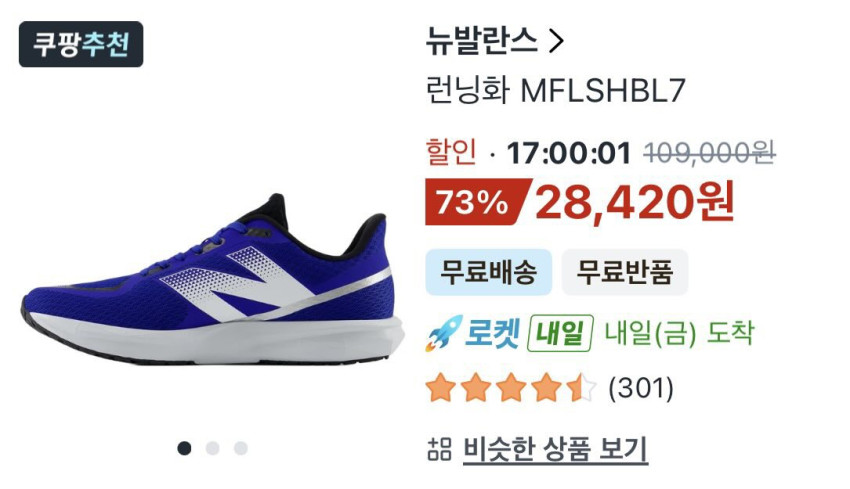 | 쿠팡 | 뉴발란스 런닝화 MFLSHBL7 | 28,420원 | 핫딜모음에서 제공한 가격 |